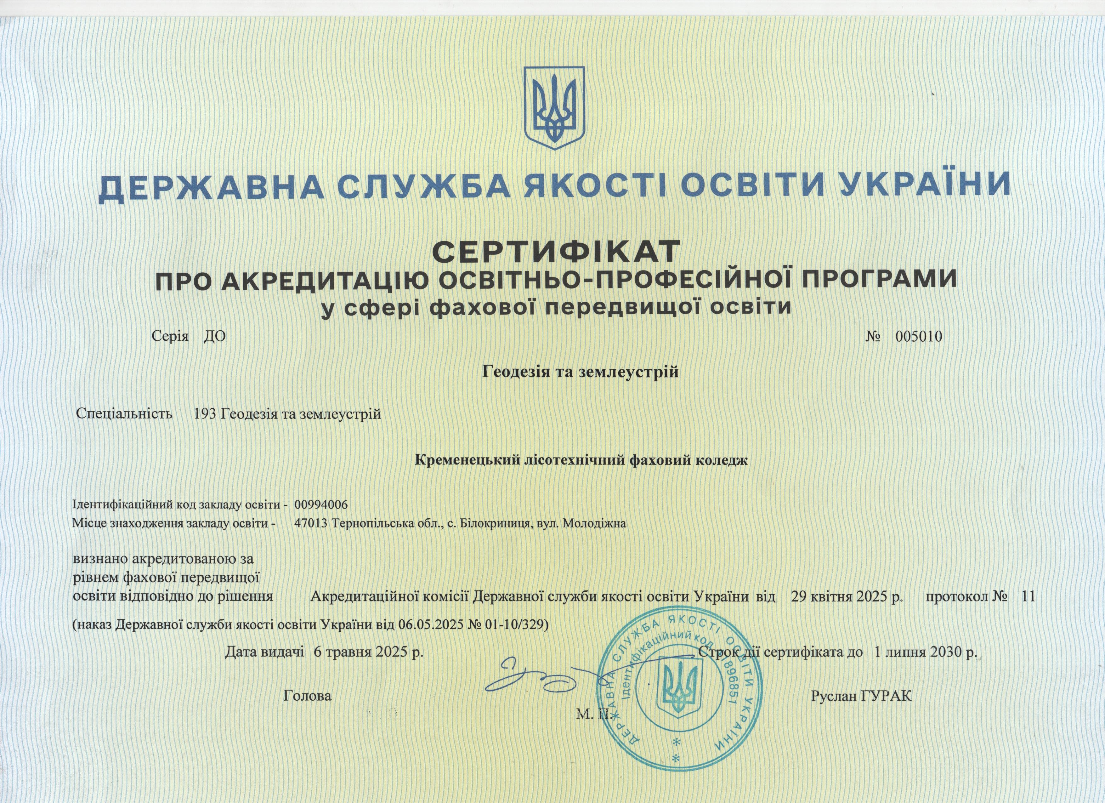 КРЕМЕНЕЦЬКИЙ ЛІСОТЕХНІЧНИЙ ФАХОВИЙ КОЛЕДЖ