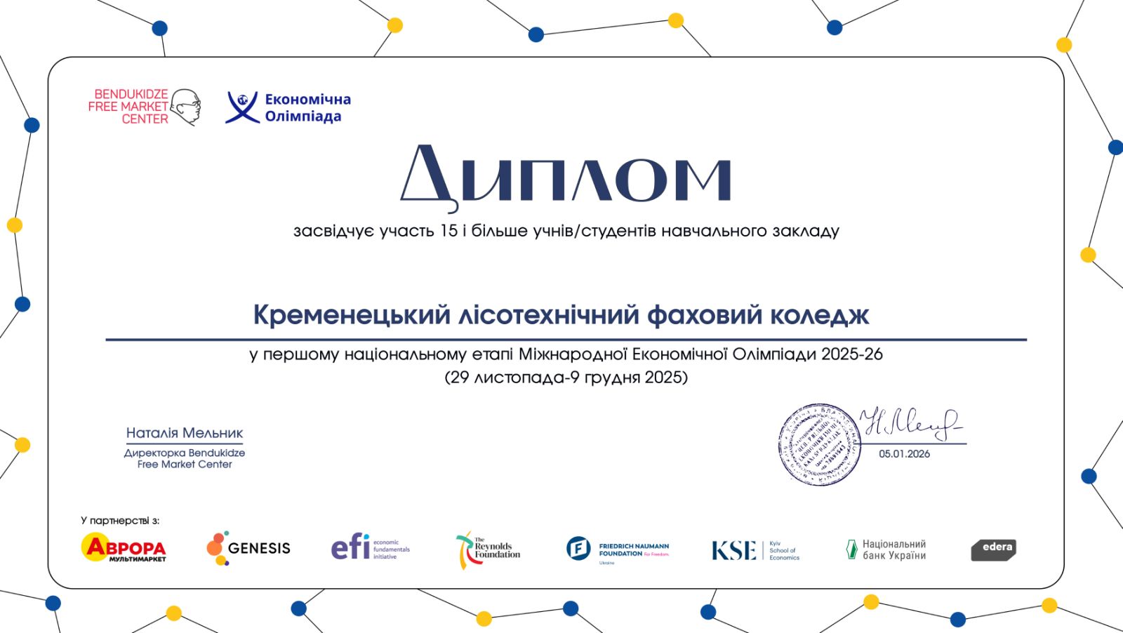Студенти Кременецького лісотехнічного фахового коледжу взяли участь у першому національному етапі Економічної Олімпіади в Україні 2025–26.