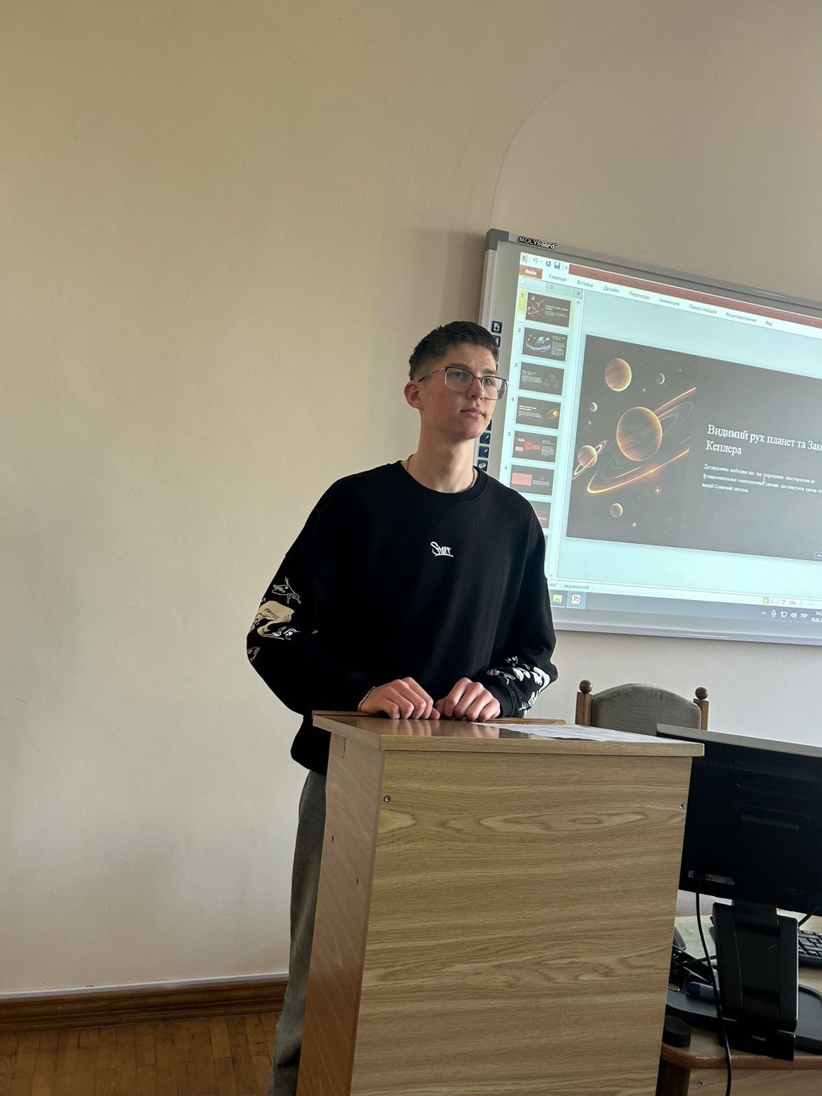 Цікавими і змістовними були презентації, які підготували студенти групи: «Астрономія - фундаментальна наука про Всесвіт» ( Трачук Марʼяна), «Від великого вибуху до сучасного Всесвіту»(Псюк Максим), «Видимий рух Сонця. Календарі»(Онишко Сергій), «Малі тіла Сонячної системи»(Мандзюк Валентин), «Наша Галактика» (Дунайчик Роман), «Планети- гіганти» (Харчишин Артур), «Сонце- наша Зірка, наше Життя» ((Людвіг Василина), «Планети земної групи» (Фещук Андрій), «Зорі: від народження до згасання» ( Куйдан Микола), «Видимий рух планет» (Швець Арсен).