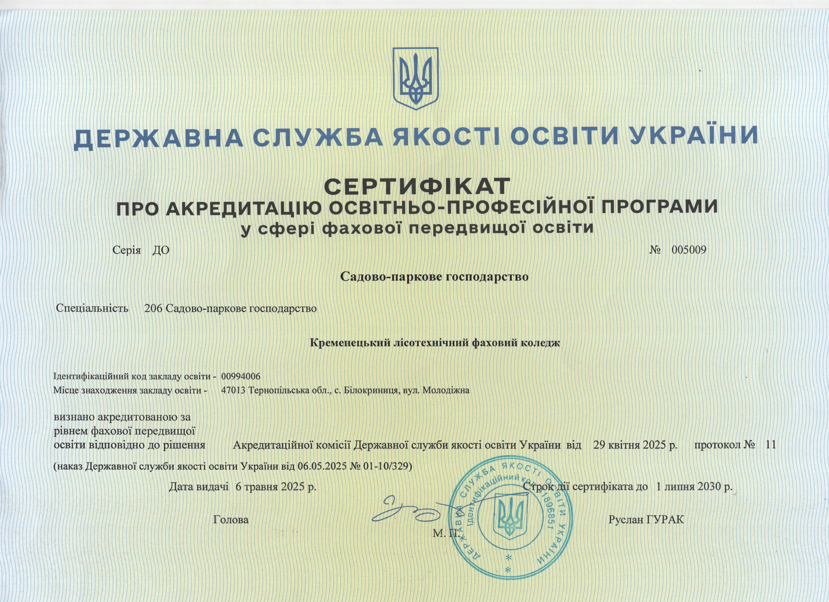 КРЕМЕНЕЦЬКИЙ ЛІСОТЕХНІЧНИЙ ФАХОВИЙ КОЛЕДЖ